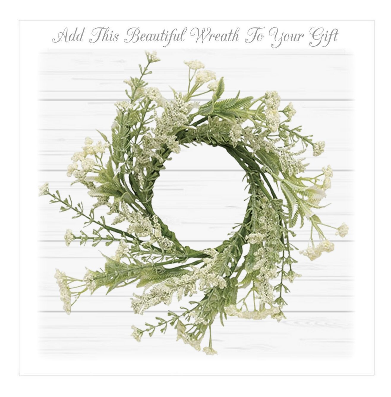 Include a stunning wreath with your gift! Shown with our new Tranquil Fern Wreath.
