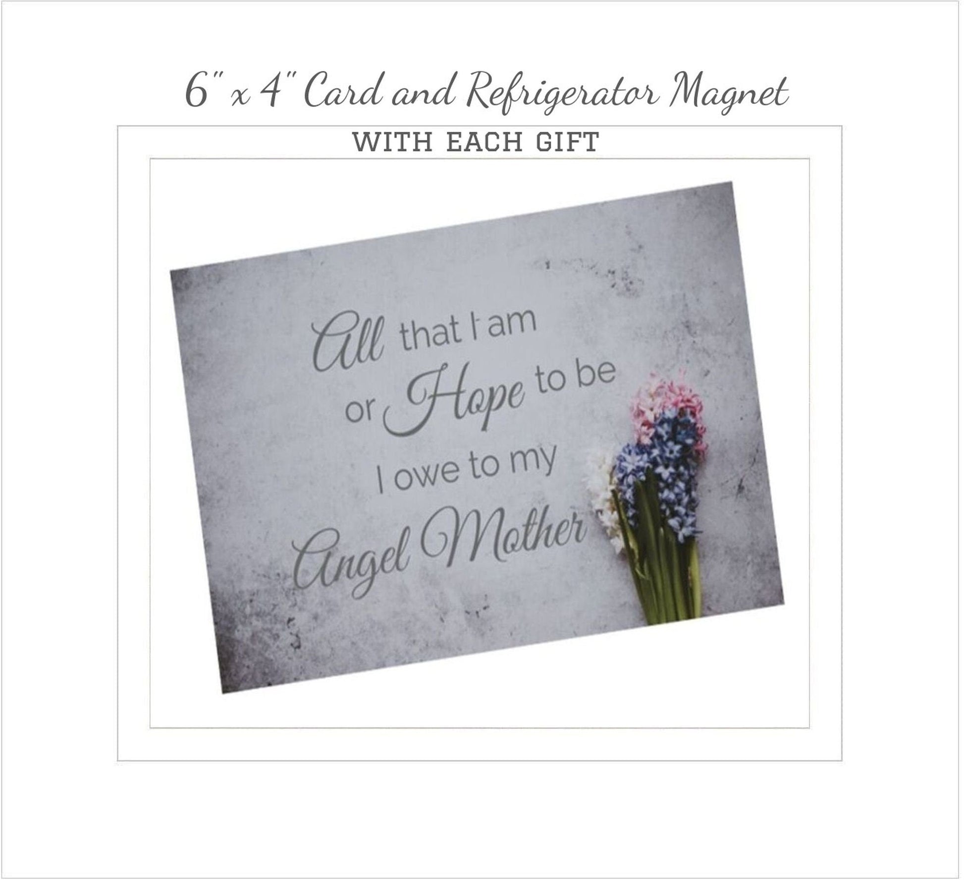 Our exclusive "Angel Mother" refrigerator magnet sent with each gift. She will be reminded of your love all year long!