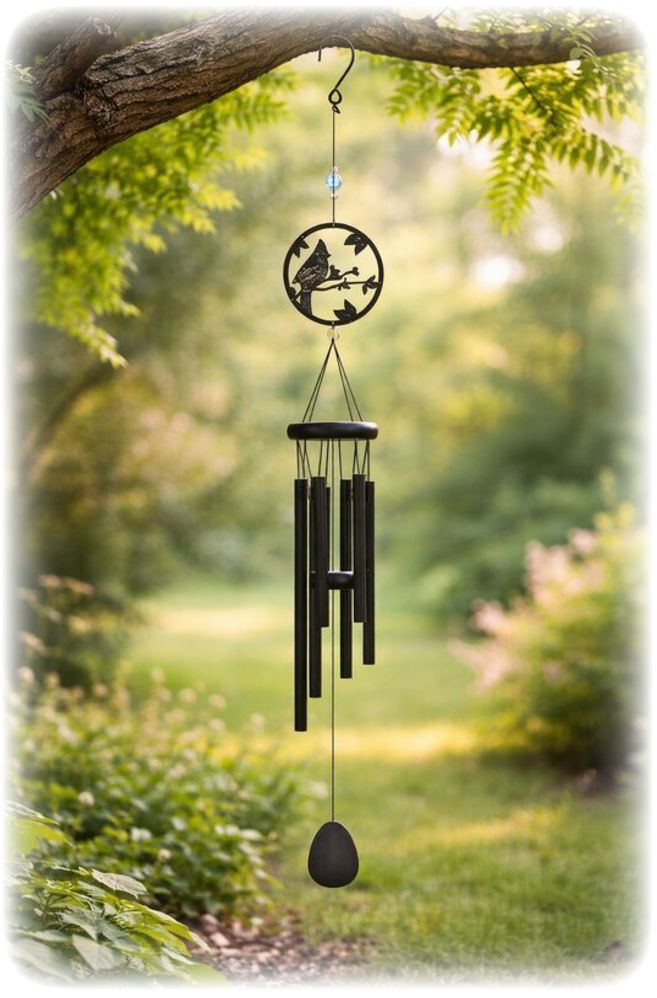 Featuring a metal cardinal cutout at the top of the chime, this thoughtful design serves as a meaningful reminder of a loved one who is always close in heart and spirit. Below, large ¾-inch diameter metal chimes create a deep, soothing tone with each gentle breeze. Measuring 35 inches tall, it offers both visual beauty and calming sound for outdoor remembrance.