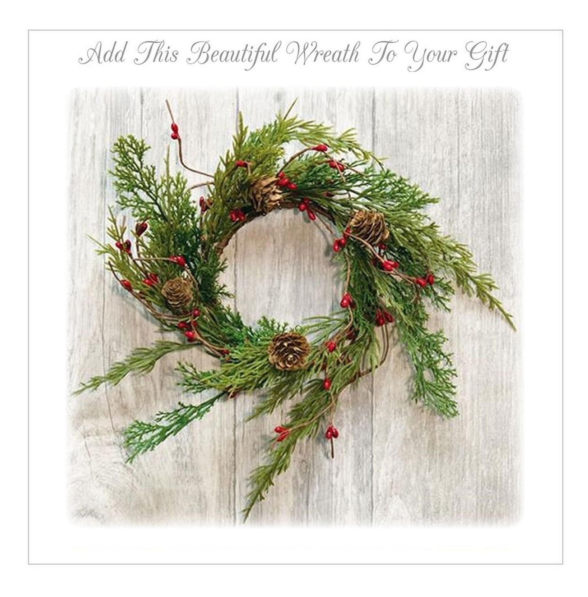 Attractively packaged and ready to gift. A realistic-looking cedar wreath may be added to your gift.