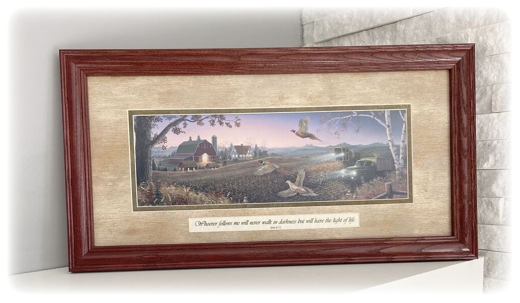 Send this beautifully framed farm scene as a lasting memorial gift. A lovely gift to remember a life well lived. A dedication card on the back of this framed art creates a special and unique way to memorialize a loved one.
