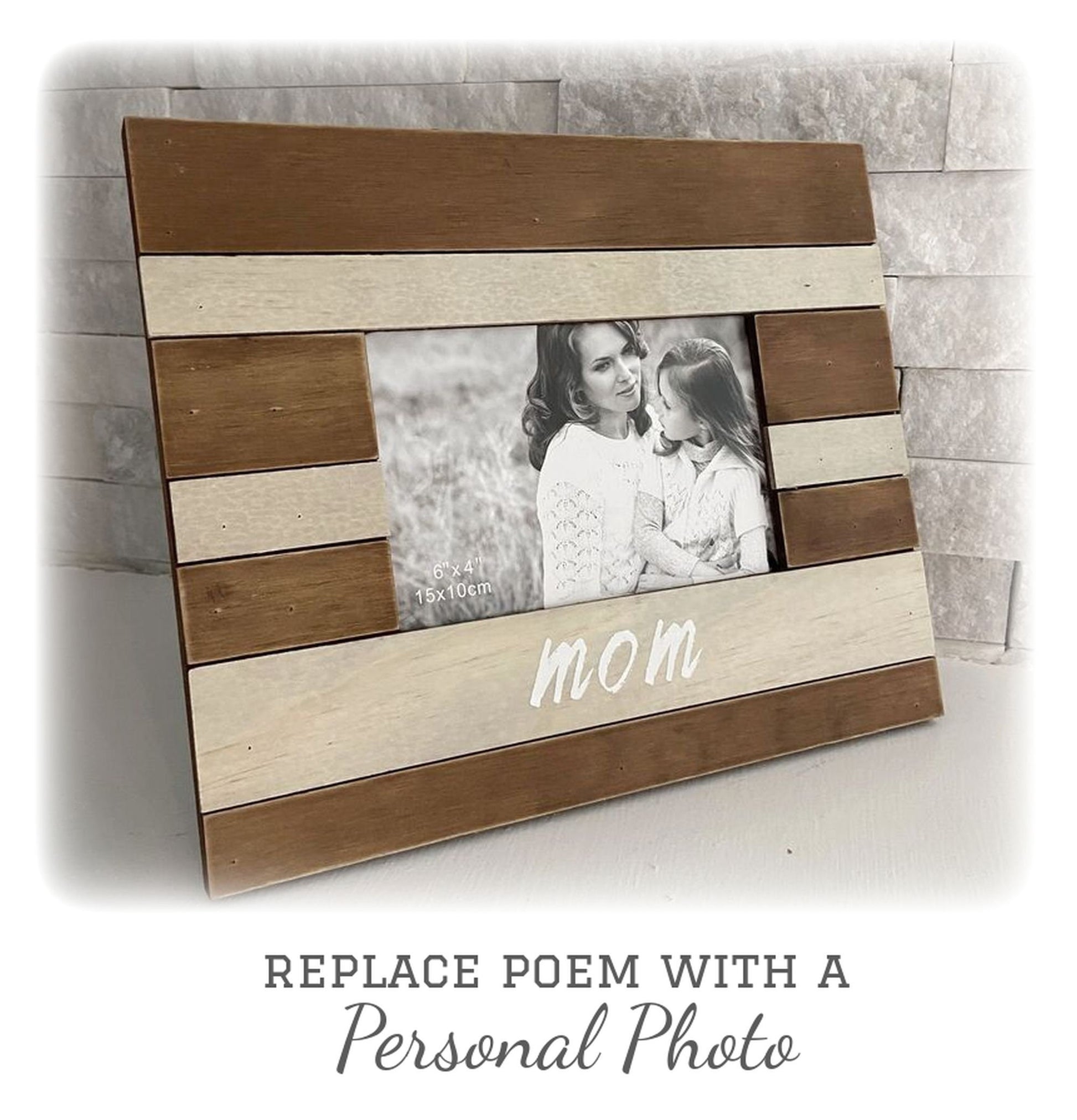 Our exclusive "I Have You In My Heart" poem card is inserted into the frame and may be replaced with a picture of a precious Mom.