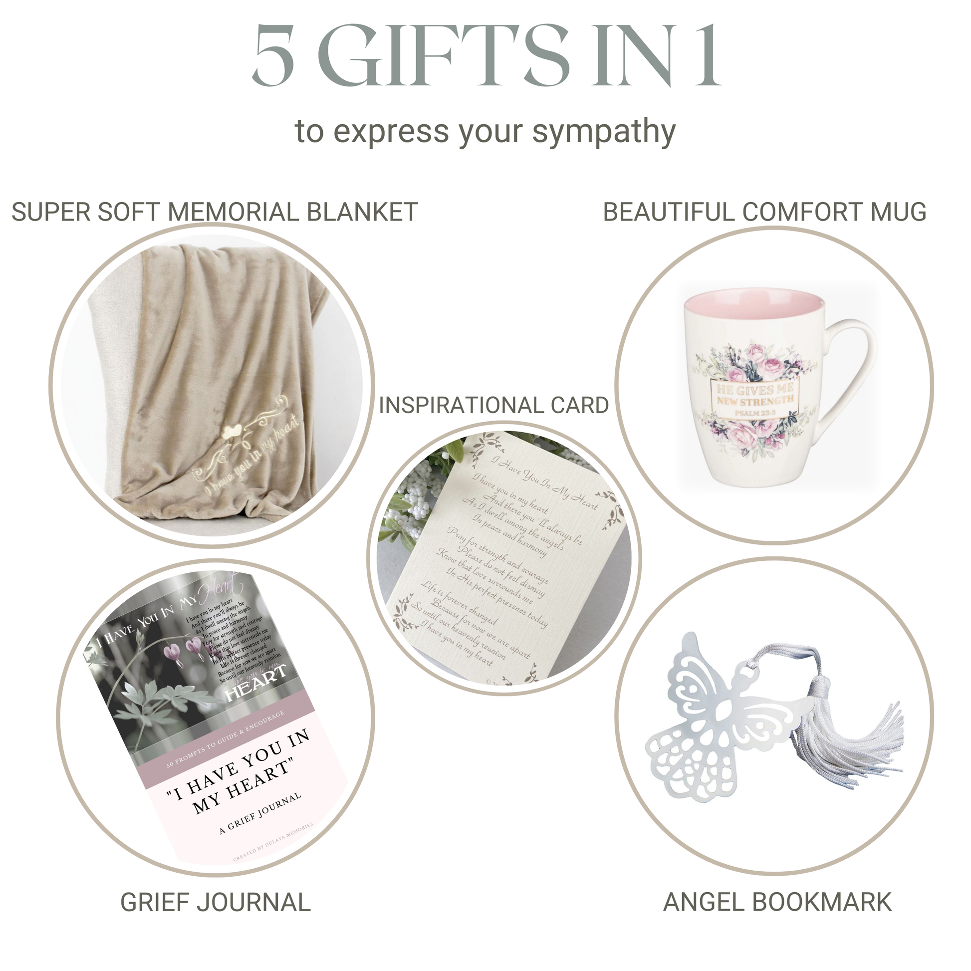 Memorial Blanket Sympathy Gift Set with Grief Journal, Angel Bookmark, and Heart Mug