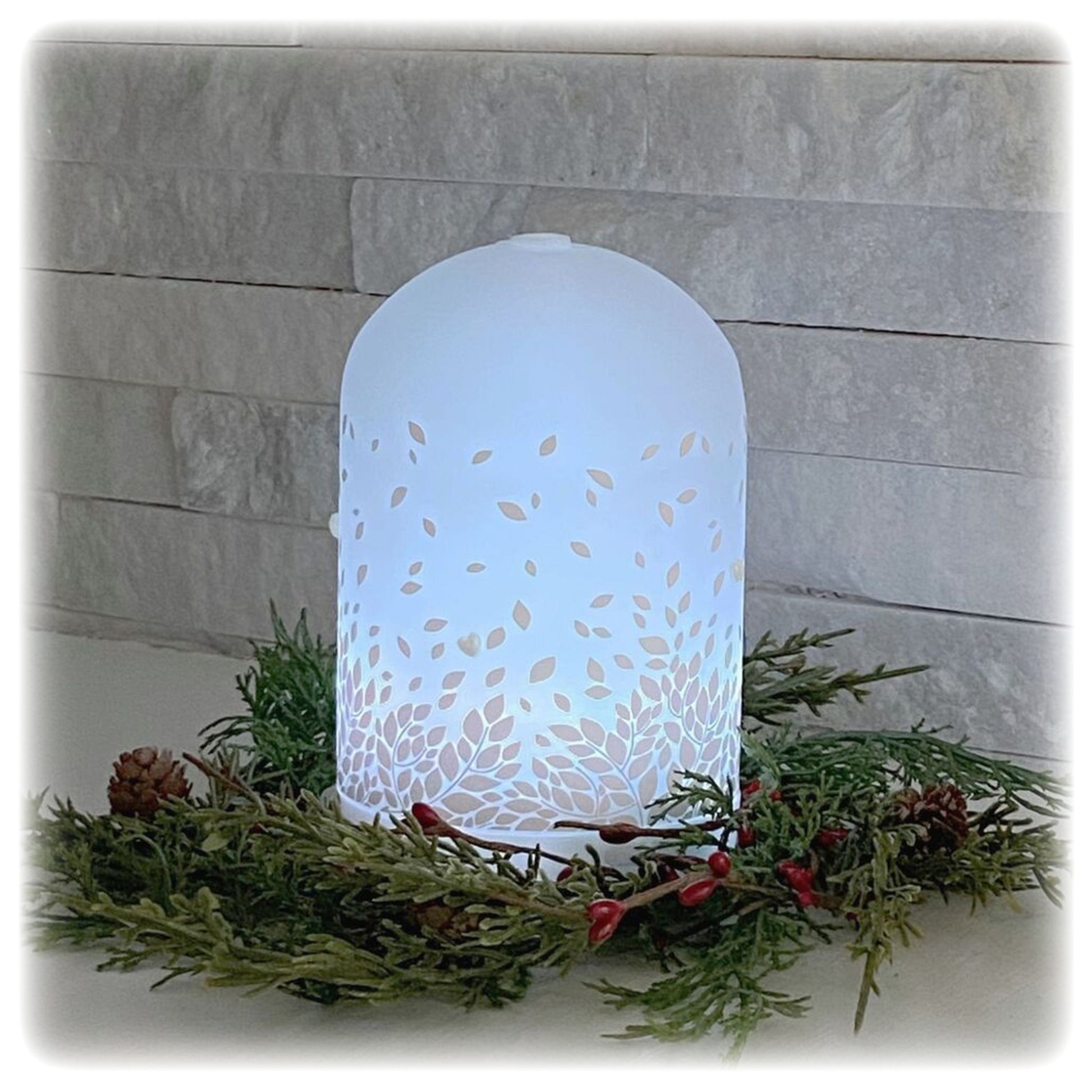 Show you care with this lovely ultrasonic oil diffuser. It is 6.5" tall and 4" in diameter at the base. Comes with 0.5 oz "Eternal Life" concentrated fragrance oil. Frosted glass dome with acrylic base.
