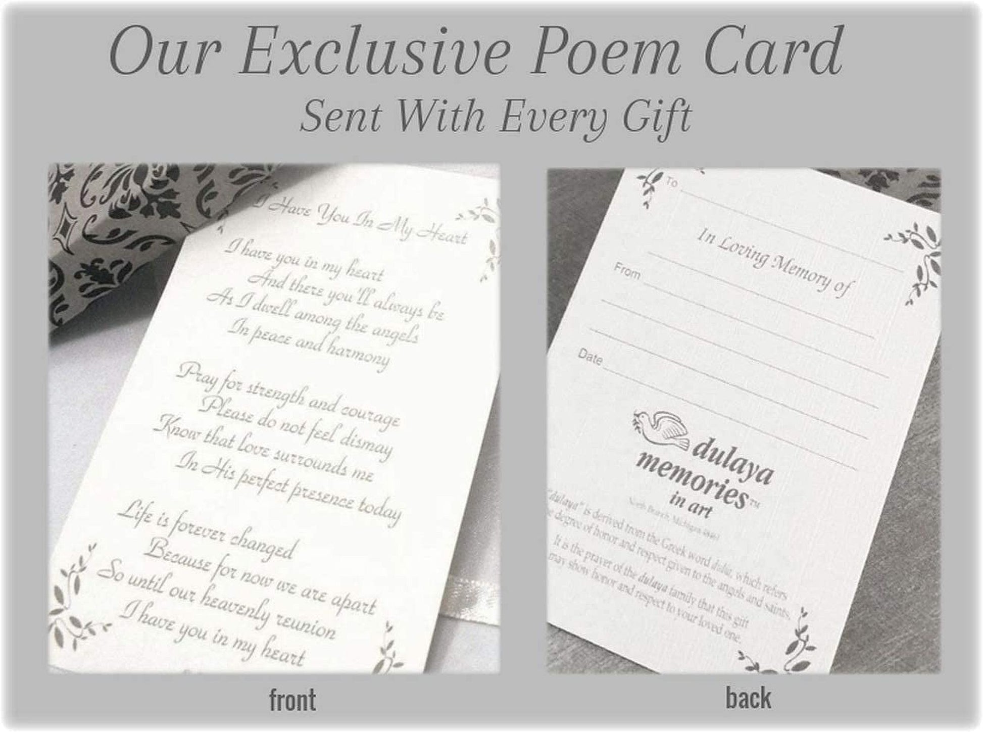 Our exclusive "I Have You In My Heart" poem card with dedication on the back side (see image) is included with each gift.