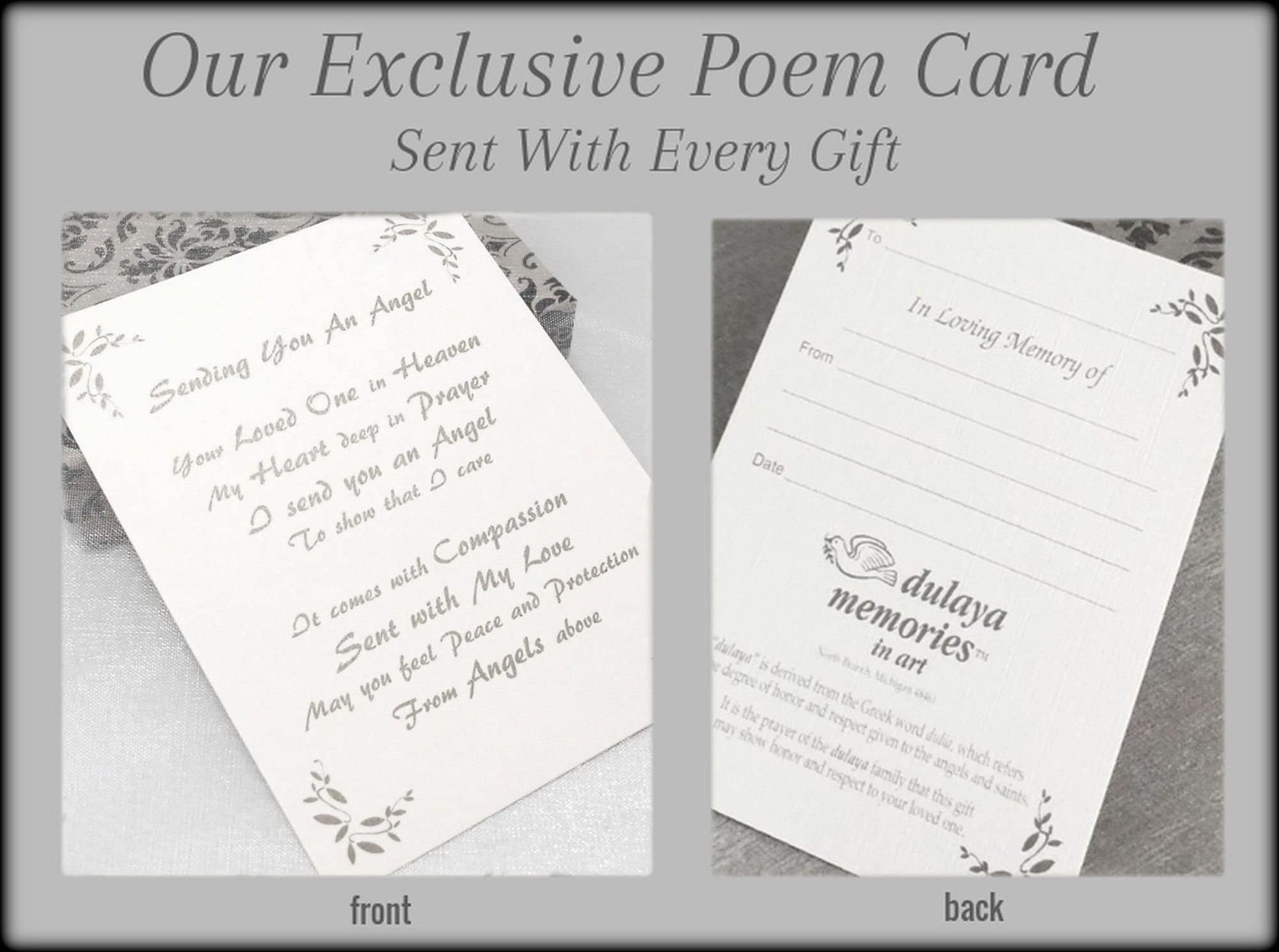 Our exclusive "Sending You An Angel" poem card is included along with a dedication card on the back side (see image).