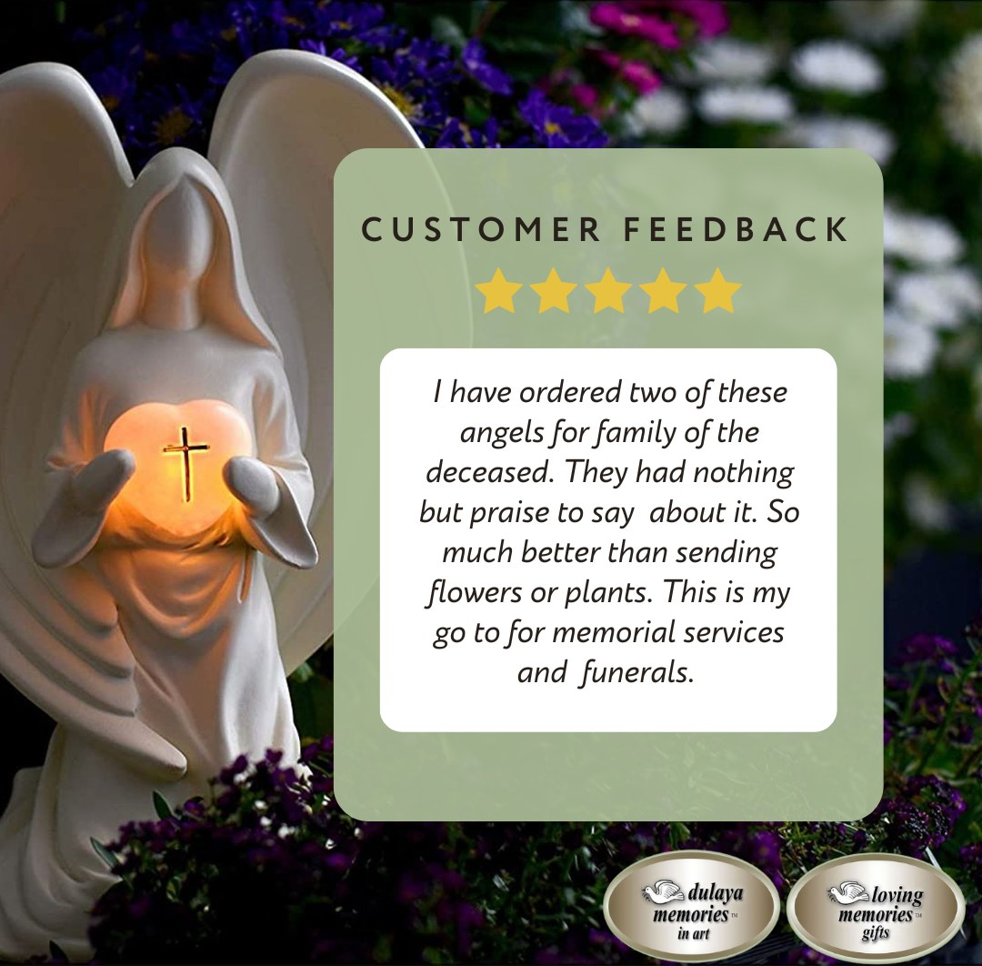 Remember a loved one that has passed away with a memorial solar angel statue.