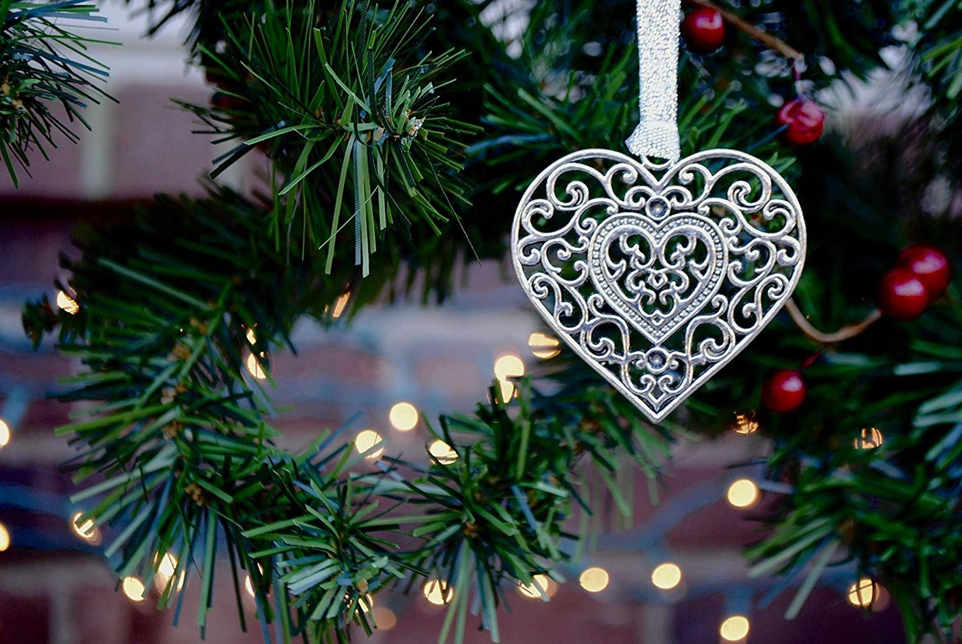 Remember someone that has passed away and is spending Christmas in Heaven this year with this beautiful silver metal heart ornament.